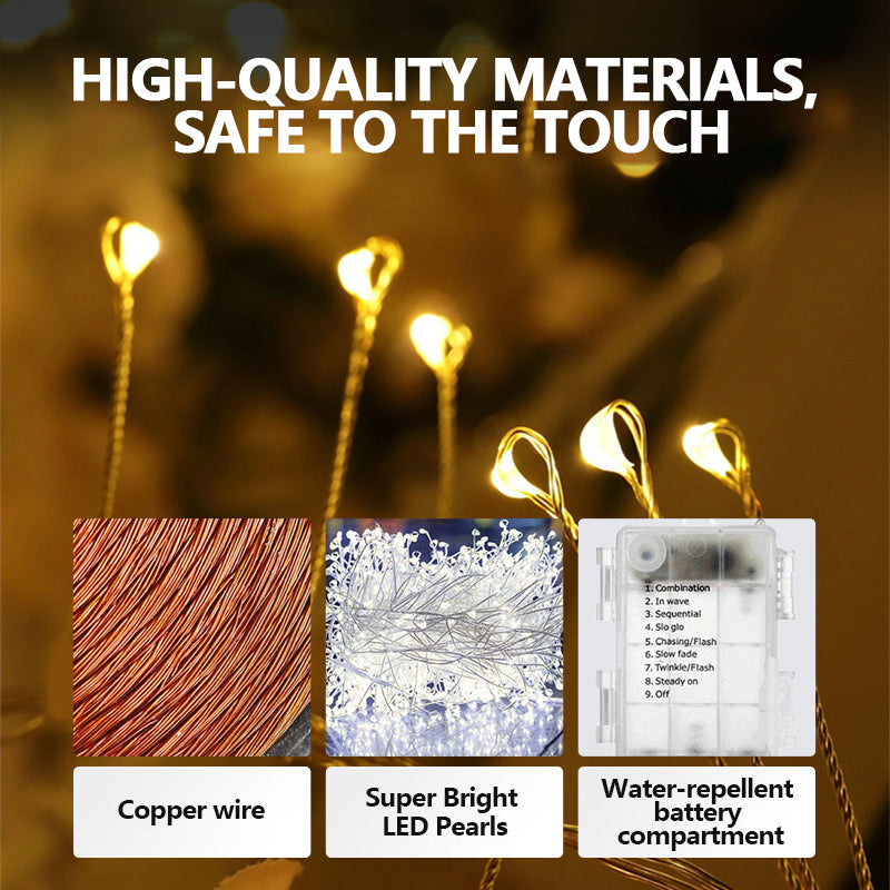🎄 Light Up Your Holidays: Turn any space into a festive wonderland with these dazzling Copper Wire Firework Lights! Perfect for Christmas trees, patios, and rooftops — they bring warm, sparkling joy to every corner.
